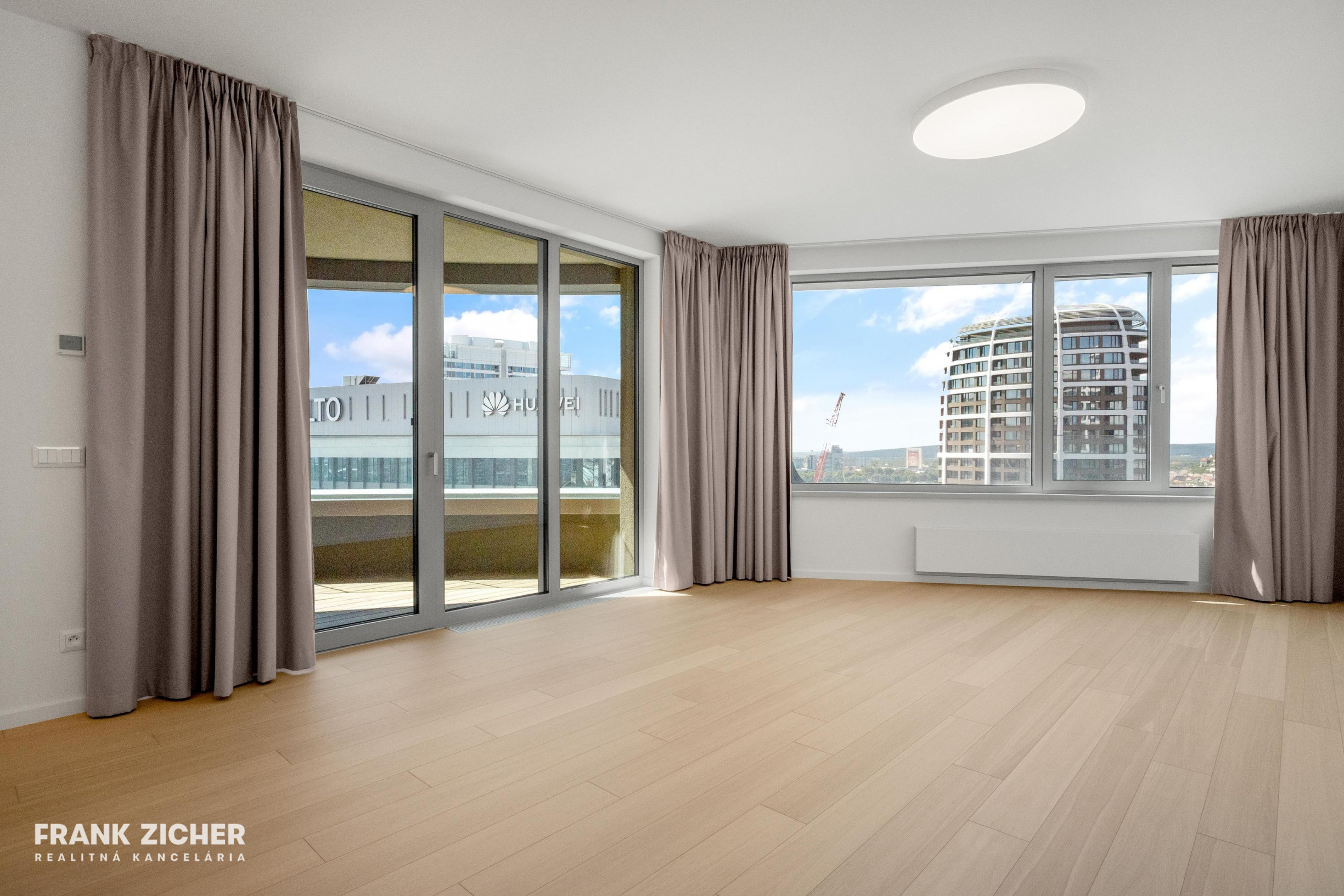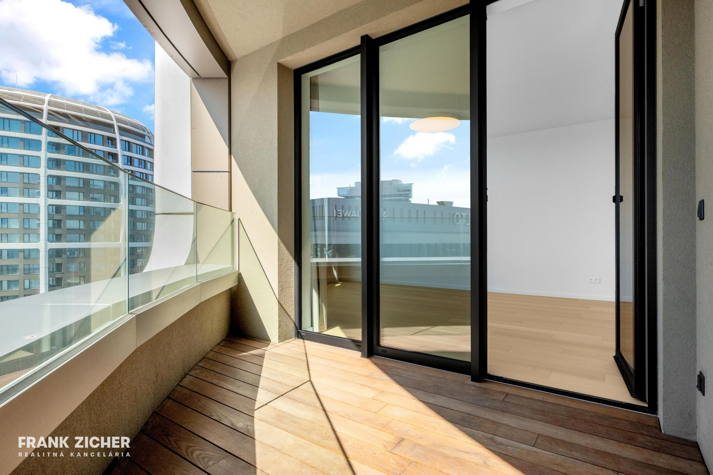 Realitná kancelária FRANK ZICHER ponúka na prenájom nový a ešte neobývaný 4-izbový byt s loggiou a parkovaním v prestížnom projekte SKY PARK RESIDENCE – veža č. 4, na 22. poschodí.
