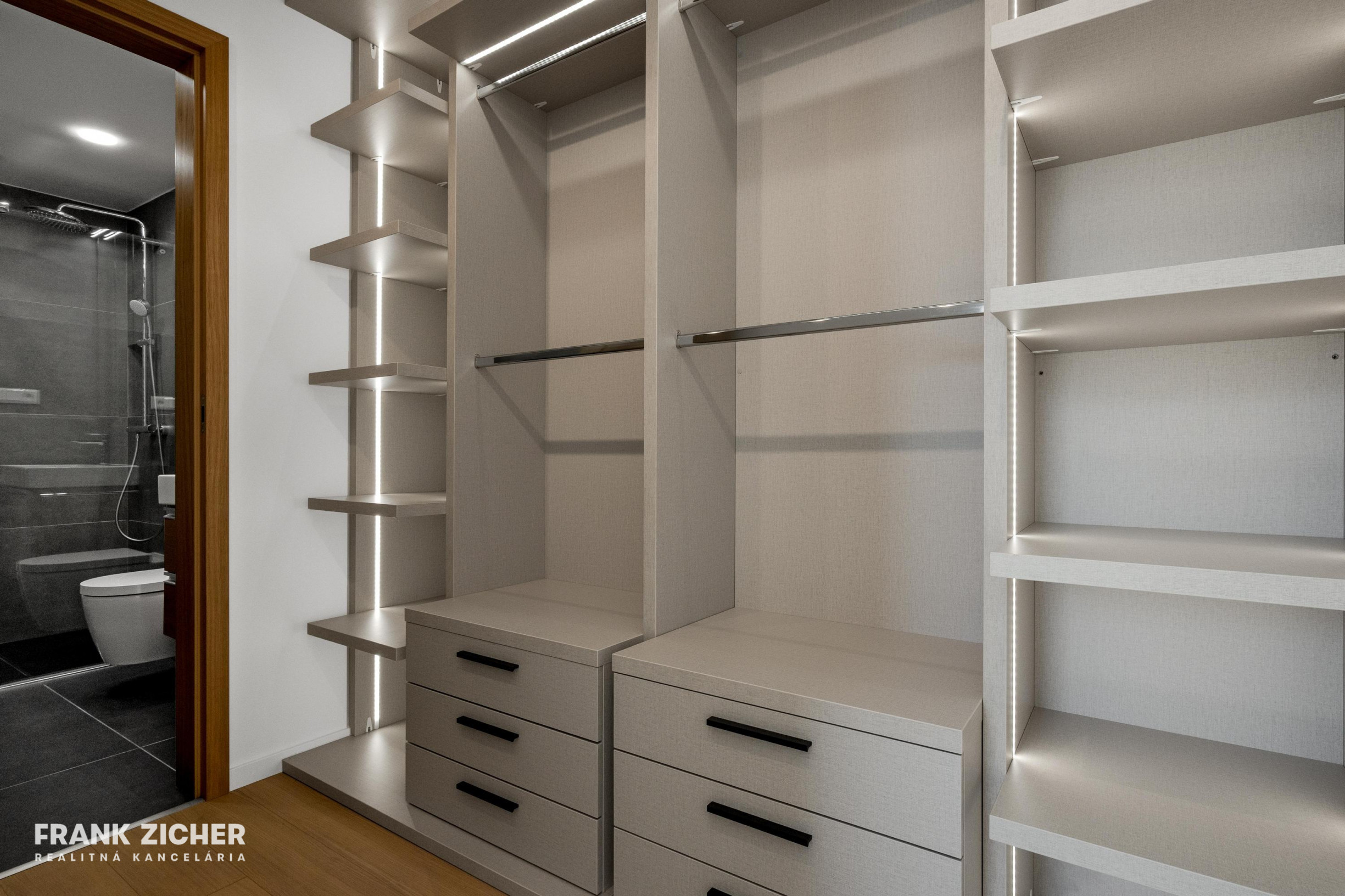 hlavná spálňa s vlastným šatníkom a prechodom do kúpeľne so sprchovým kútom