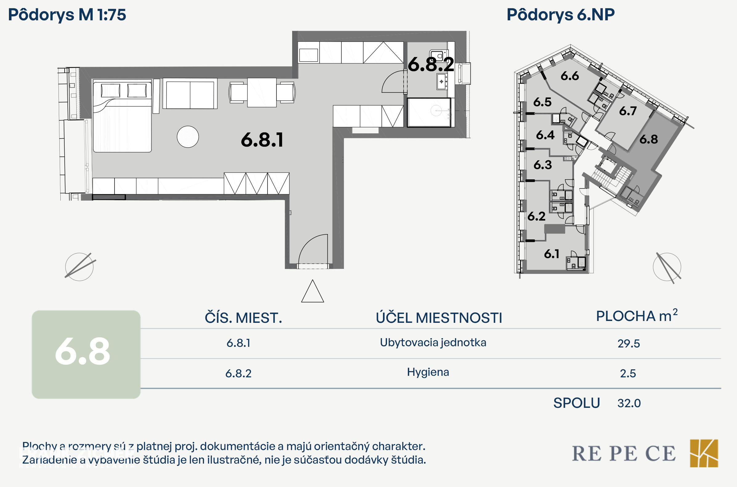 Jednotka s výmerou 32 m² sa nachádza na 6. nadzemnom podlaží. Predáva sa v štandarde, dokončenie je naplánované na posledný kvartál roka 2026.