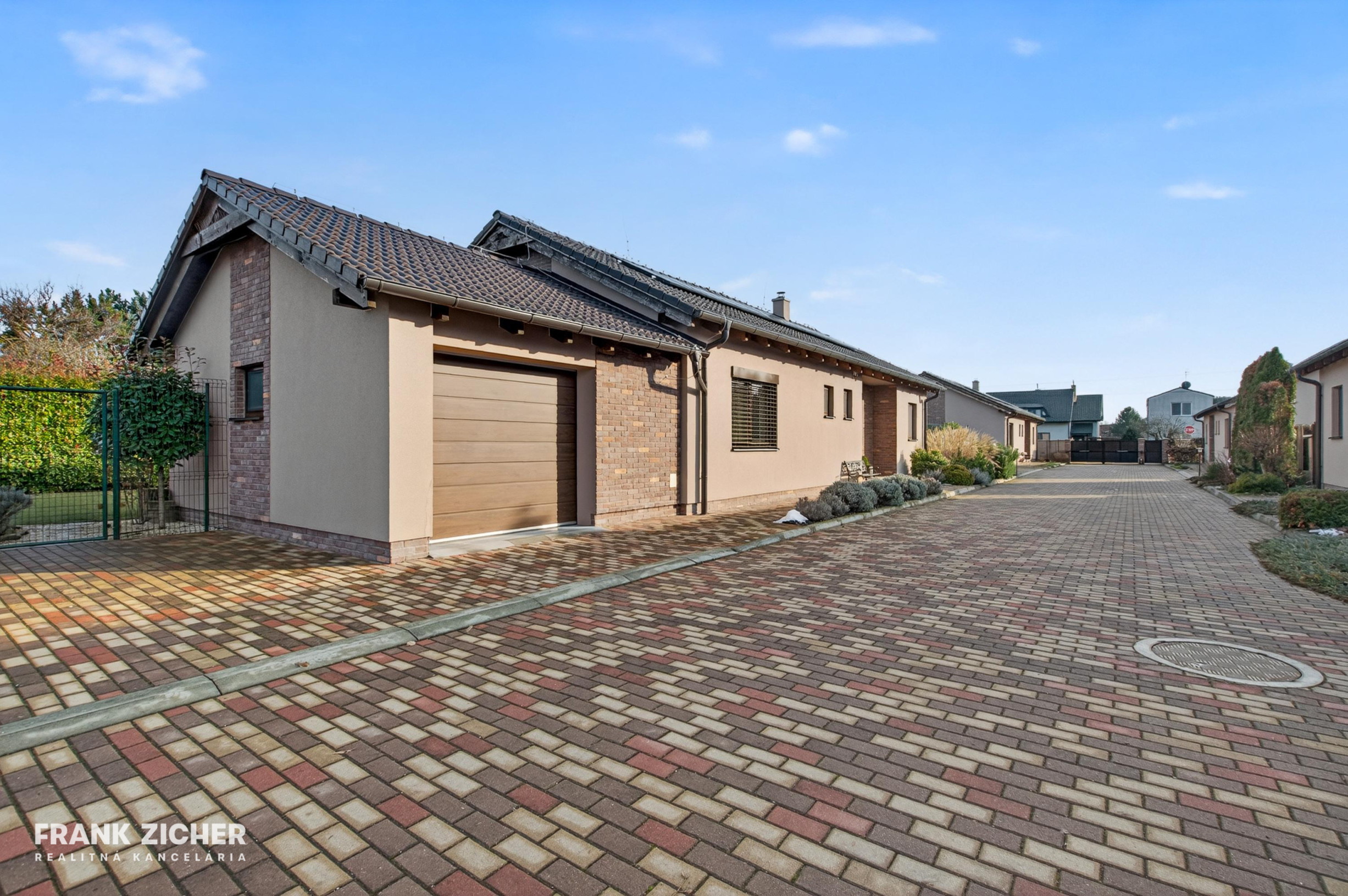 Realitná kancelária FRANK ZICHER vám ponúka na predaj moderný, samostatný 4-izbový rodinný dom s garážou a peknou záhradou situovaný v slepej ulici – v uzavretom kondomíniu 8 domov, v lokalite Alžbetin dvor - Miloslavov. Murovaný rodinný dom bol kolaudovaný v roku 2016 a výhodou je, že je odsadený od hlavnej cesty v kľudnom prostredí (nejde o dom pri hlavnej ceste ale je situovaný na pozemku v 2. rade od cesty), uzavretá ulica pridáva na bezpečnosti a súkromí.